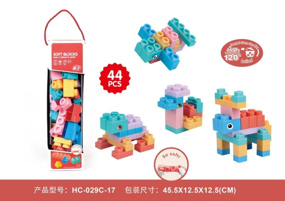 Zestaw kolorowych miękkich klocków dla dzieci od 3-go roku życia. Zestaw wykonano  z bezpiecznego dla dzieci i środowiska materiału PVC. Klocki są lekkie i nie posiadają ostrych zakończeń. Bardzo łatwo je utrzymać w czystości, po wyparzeniu, nie tracą kolorów. Klocuszki możemy dowolnie wyginać, a po wygięciu wracają do swojego poprzedniego kształtu.