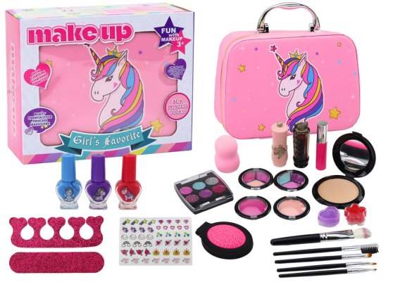 Wyjątkowy zestaw piękności, który przeniesie Twoje dziecko w magiczny świat makijażu! Różowy kufer z motywem uroczego jednorożca kryje w sobie wszystko, czego potrzebuje młoda artystka do kreatywnych eksperymentów z wyglądem.