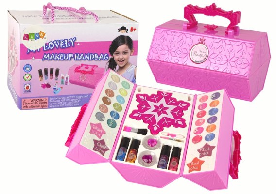 Każda dziewczynka chciałaby naśladować swoją mamę w makijażu codziennym lub wieczorowym. Dzięki temu zestawowi ma taką możliwość! Zestaw, który przedstawiamy, jest idealny dla małych modniś, które zaczynają swoją przygodę z makijażem, czy malowaniem paznokci. Ten zestaw zapewni dziecku zabawę, ale także rozwinie umiejętności artystyczne i wyobraźnie, na pewno umożliwi naukę nowych technik makijażu. Zestaw z łatwością pozwoli wcielić się dziewczynkom w rolę makijażystki. Zestaw do makijażu został zaprojektowany z myślą o dzieciach, jest bezpieczny dla delikatnej skóry. Produkty zawierające się w skład zestawu nie zawierają substancji szkodliwych.