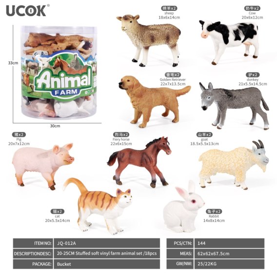 Zestaw 18 figurek ze zwierzątkami znanymi z gospodarstwa, dla dzieci od trzeciego roku życia. Figurki idealnie pasują do ręki dziecka, każda z nich wykonana została z dbałością o detale. Z tym zestawem dziecko może tworzyć swoje własne scenariusze i rozwijać kreatywność. Figurki wykonane zostały z bezpiecznych materiałów najlepszej jakości.