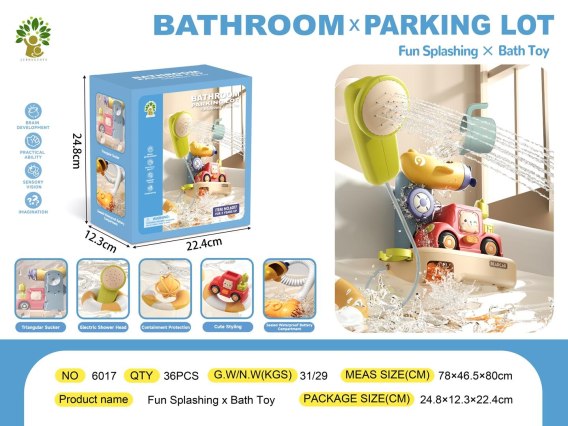 Zestaw do kąpieli z prysznicem i akcesoriami dla dzieci od trzeciego roku życia. Kolorowy zestaw zabawek do wody wykonany został z najlepszej jakości materiałów bezpiecznych dla maluszka. W zestawie znaleźć możemy prysznic, kubek, autko. Zestaw posiada wytrzymałe przyssawki, dzięki którym możemy go przyczepić do wanny lub innej płaskiej powierzchni. Do działania prysznica niezbędne są baterie typu 3 x 1,5 V (brak w zestawie), po zamontowaniu ich należy włożyć do wody dolną część prysznica i nacisnąć przycisk. Z tym zestawem Twoja pociecha nie będzie nudzić się podczas kąpieli.