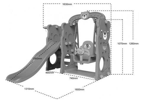 Wszystkie elementy zjeżdżalni/huśtawki wykonane są z wysokiej jakości materiału HDPE. Jest to polietylen o dużej gęstości, wynoszącej od 0,942 do 0,965 g/cm3. HDPE jest materiałem bardziej elastycznym i odpornym na uszkodzenia mechaniczne w porównaniu z materiałami wykorzystywanymi w innych tego typu konstrukcjach.