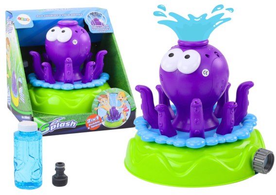 Zraszacz w kształcie fioletowej ośmiornicy to idealna atrakcja dla dzieci w upalne dni. Po podłączeniu do węża ogrodowego porusza się, rozpryskuje wodę i wydobywa bańki mydlane. Wysoka jakość wykonania i estetyczny design.